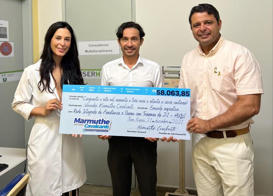 O vereador de João Pessoa, Marmuthe Cavalcanti (Republicanos), visitou novamente o Hospital Universitário Lauro Wanderley (HULW), nesta quarta-feira (8). Na ocasião, o parlamentar esteve reunido com o superintendente do HULW, Marcelo Tissiani, e fez a entrega do cheque simbólico referente à emenda impositiva de sua autoria, que destinou R$ 58.063,00 para investimentos e custeio da Rede Integrada de Assistência à Pessoa com Trissomia 21, que funciona no mencionado Hospital.